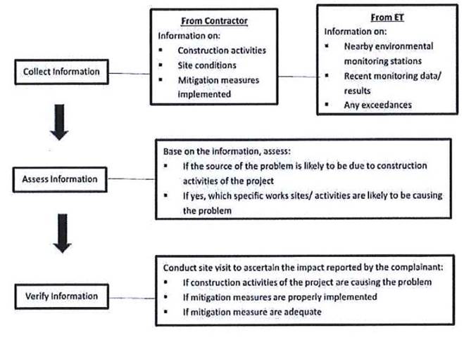 Based on the aforementioned information obtained, the ET shall assess whether the source of the problem is likely to be due to the construction activities of the project, and also ascertain which specific works sites and / or activities are the likely causes.