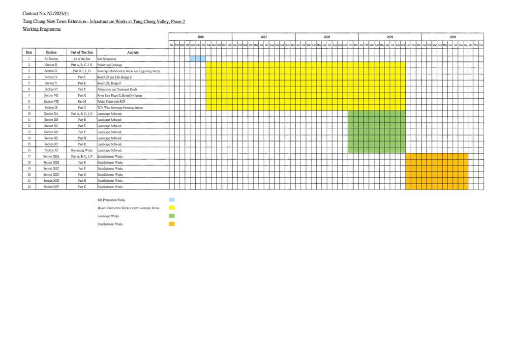 The works to be executed under the contract involve infrastructure works at Tung Chung Valley, Phase 2 in Tung Chung New Town Extension, as described below: