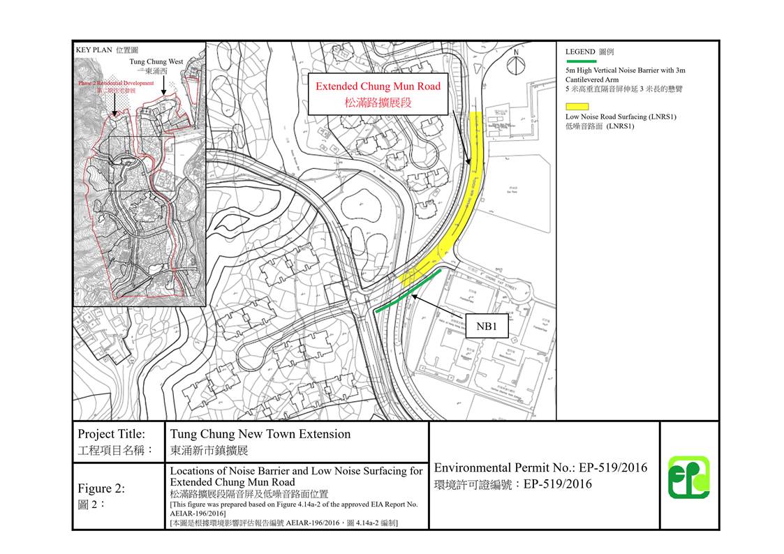 1.1.4 According to the approved EIA Report, Chung Mun Road as a district distributor road is a designated project under Item A.1 of Schedule 2 (Part I) under the EIAO. According to the EP’s condition 2.33, the road traffic noise mitigation measures on Chung Mun Road are given in Figure 2 of that EP as given in Appendix B.
