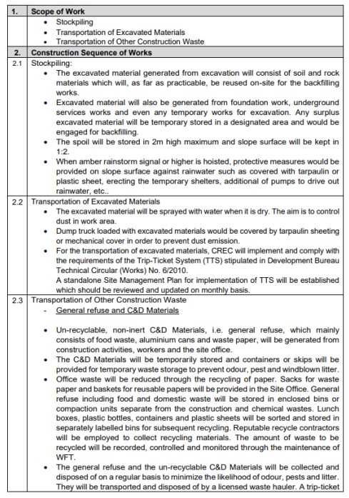 This Waste Management Plan (WMP) is developed CREC Joint Venture(known as CREC JV) in the execution of the following works. Environmental Permit (EP-519/2016) of this Project has been issued by Environmental Protection Department and the Waste Management Plan is to be prepared under EP Condition 2.24.
